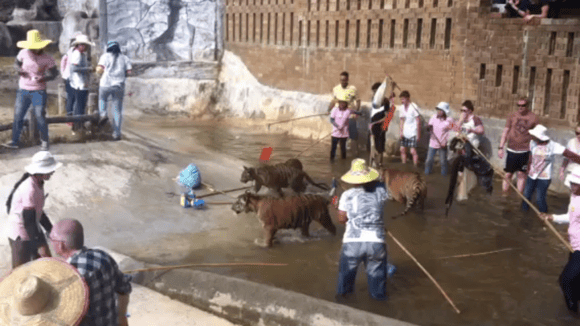 Dem Besuch des Tigerklosters in Kanchanaburi sah ich mit gemischten Gefühlen entgegen. Schließlich ist der „Tiger Temple“ eine auch in Reiseführern nicht unumstrittene Sehenswürdigkeit. Freunde wiederum berichteten mir begeistert vom Besuch; ich sah Bilder und Videos, auf denen sie mit einem ausgewachsenen bengalischen Tiger posierten. Was mich an den Videos am meisten irritierte, war der schläfrige, fast apathische Ausdruck der Tiere. Werden die Tiger sediert? Geht hier alles mit rechten Dingen zu?